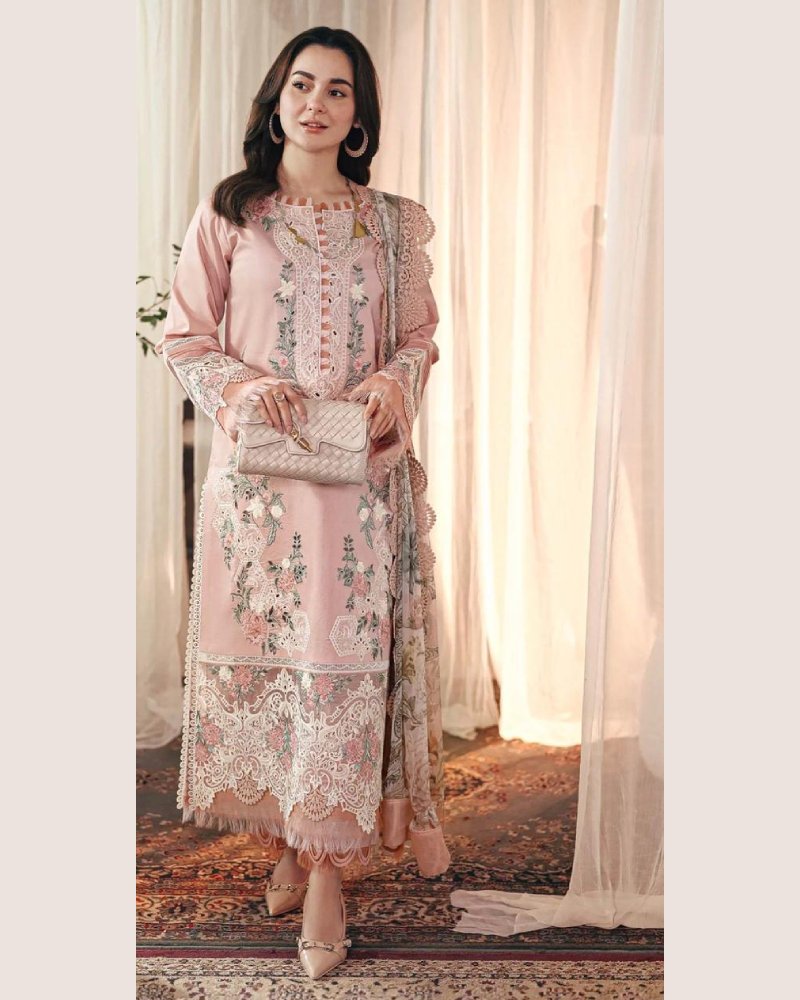 | Top – Pure cotton heavy self embroidery attached with laces,Bot –Â cotton solid ,Dup – Chiffon digital print |