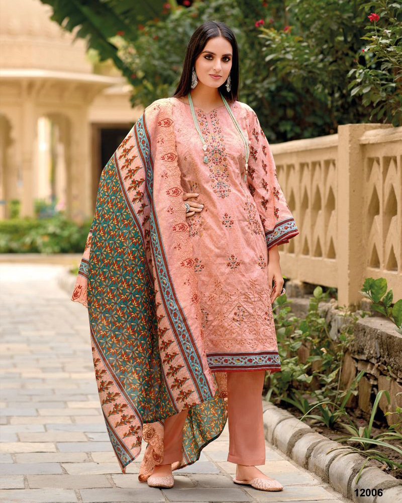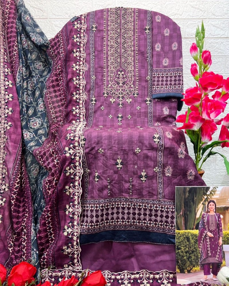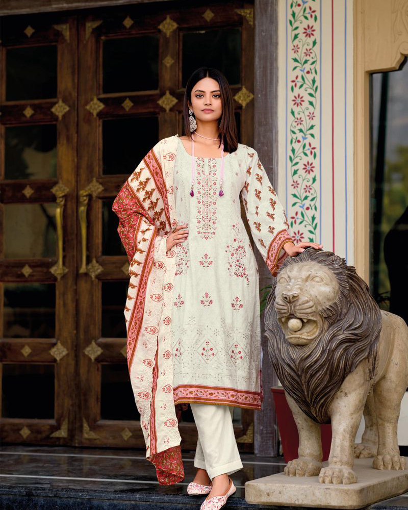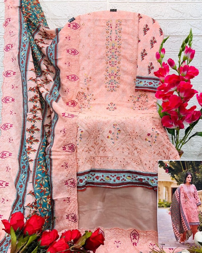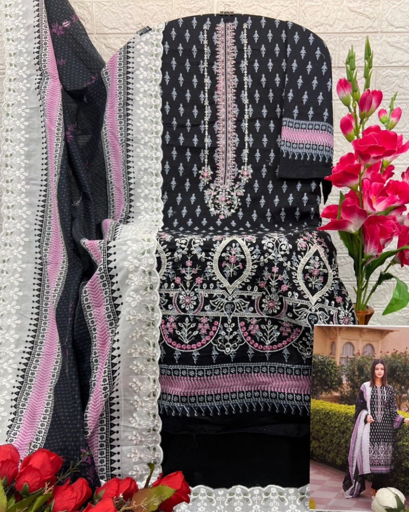 | Top -Pure cotton with heavy self embroidery,Bot – cotton solid,Dup – Cotton print with heavy cutwork embroidery |